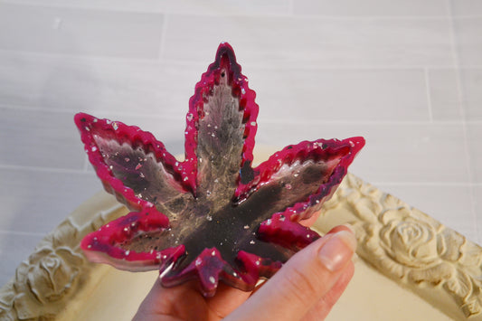 Pink and Black Maple Leaf Ashtray & Trinket Tray Set