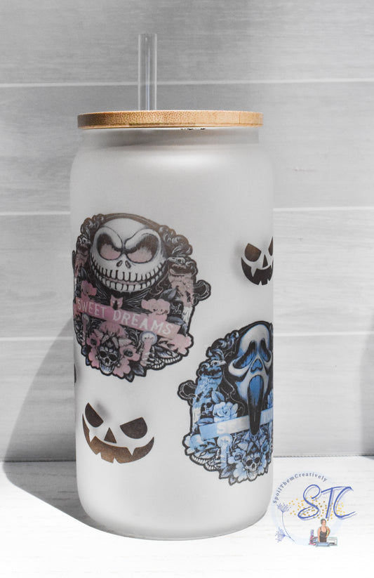 Halloween #001 Beer Glass Cup with Bamboo Lid and Straw (18oz)