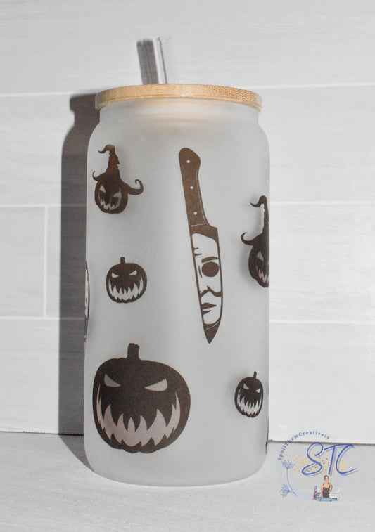 Halloween #002 Beer Glass Cup with Bamboo Lid and Straw (18oz)