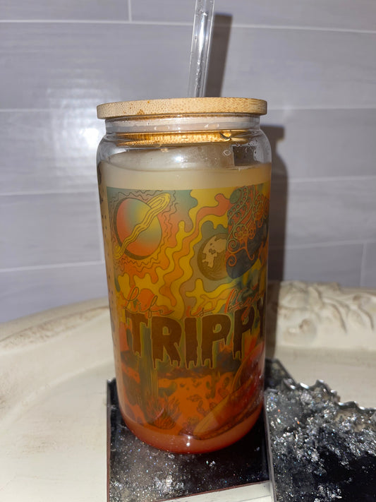 Dreamy Mushroom Beer Glass Cup with Bamboo Lid and Straw (18oz)