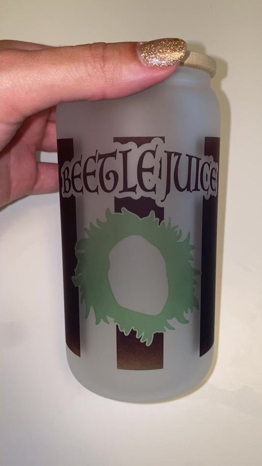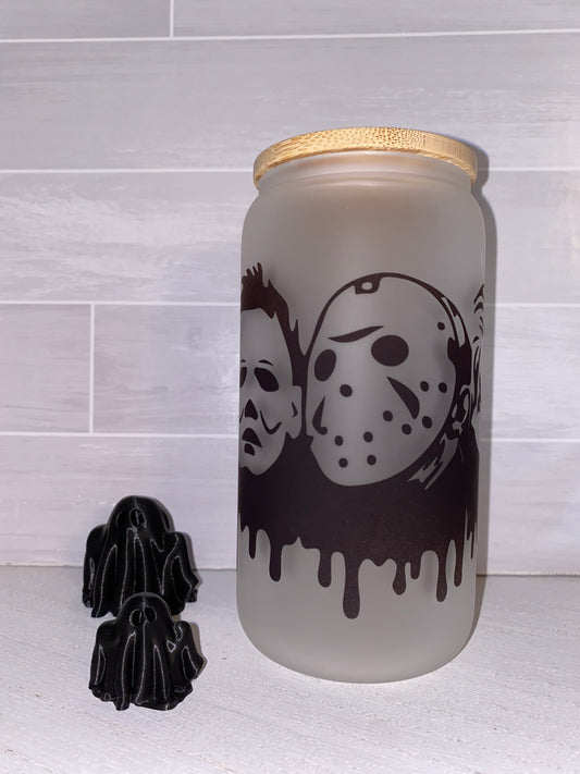 Halloween #001 Beer Glass Cup with Bamboo Lid and Straw (18oz)