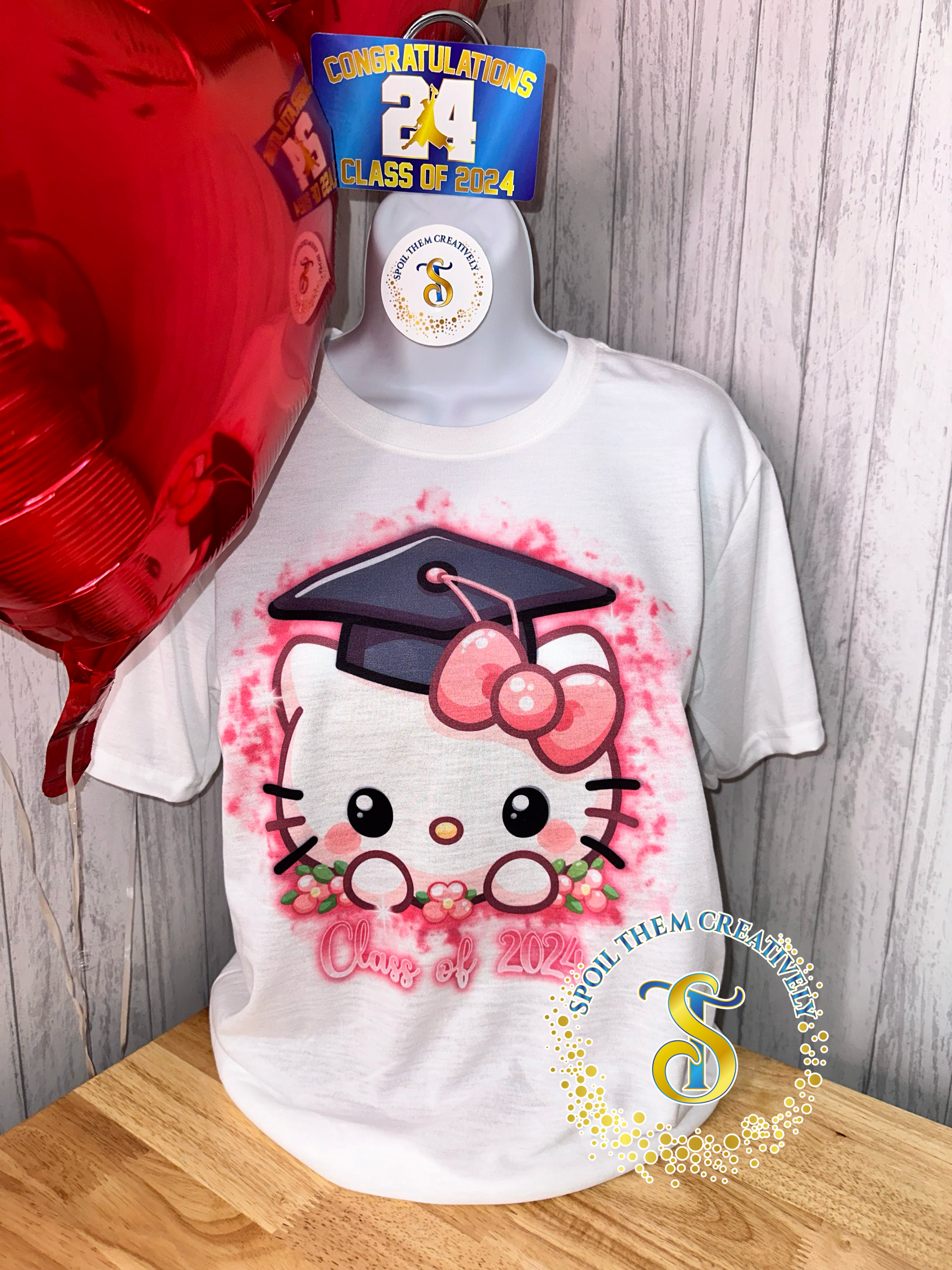 HelloKitty Graduation Shirt | White Shirt | Pink Airbrush Style Unisex Sizing