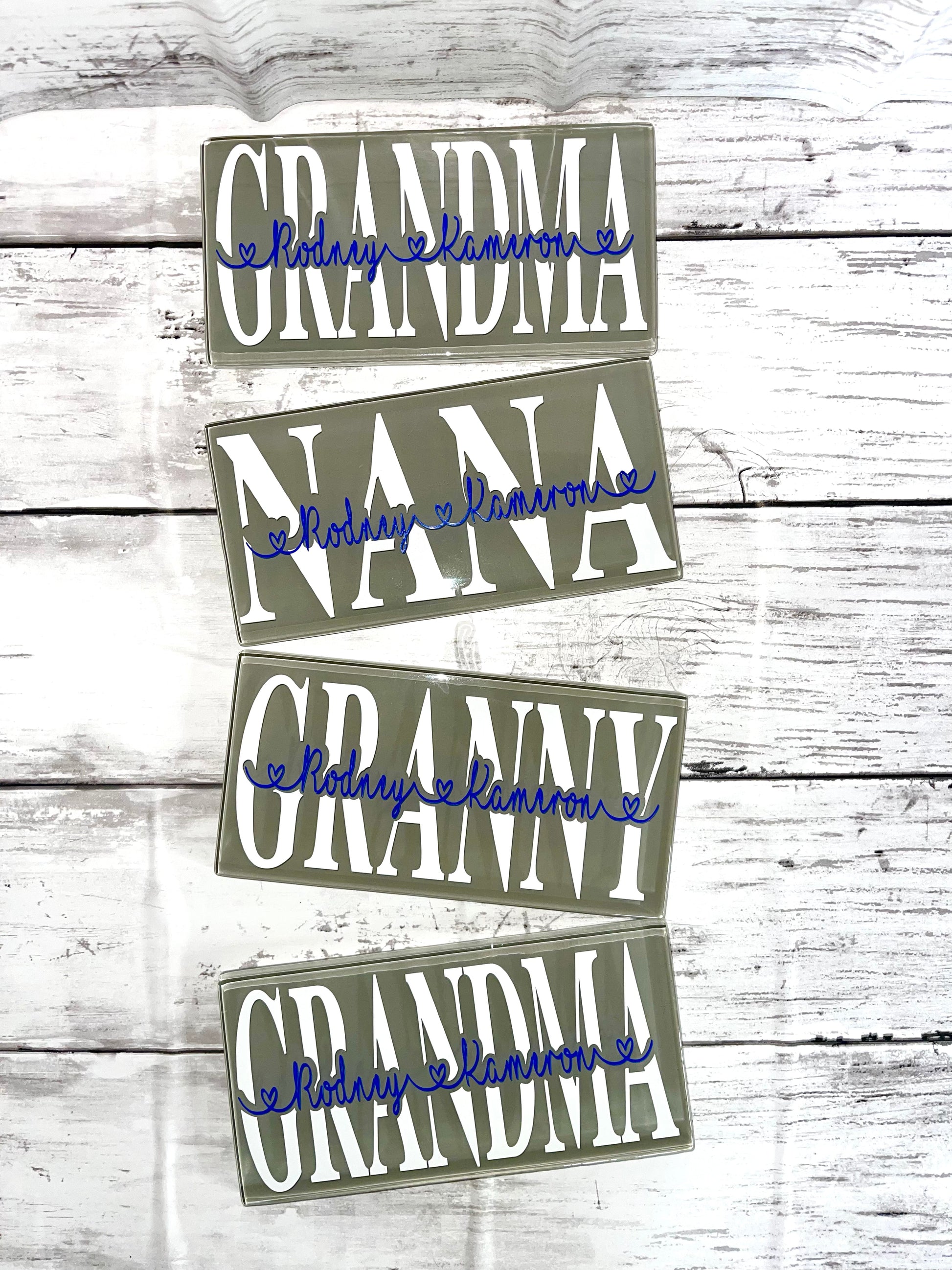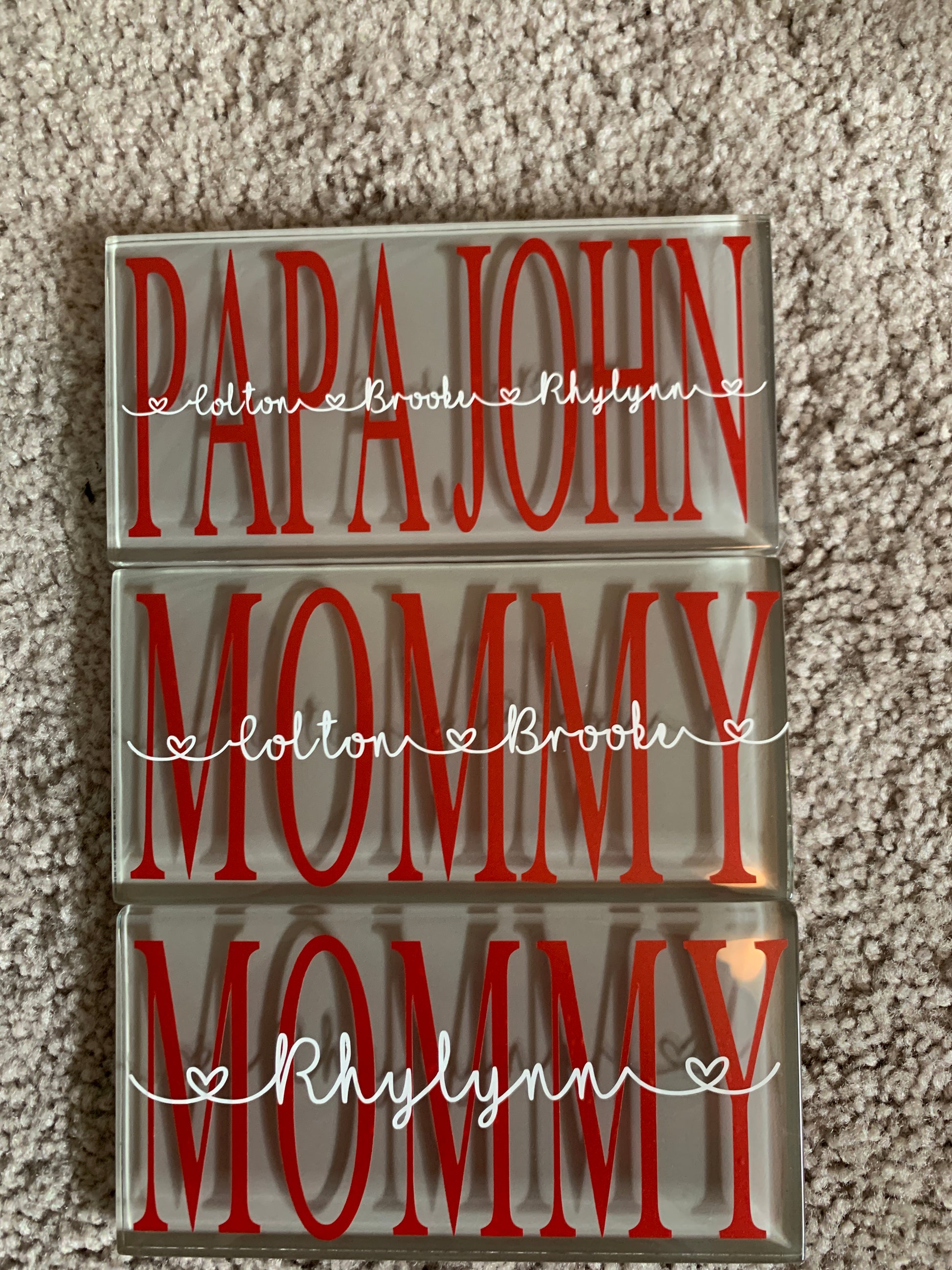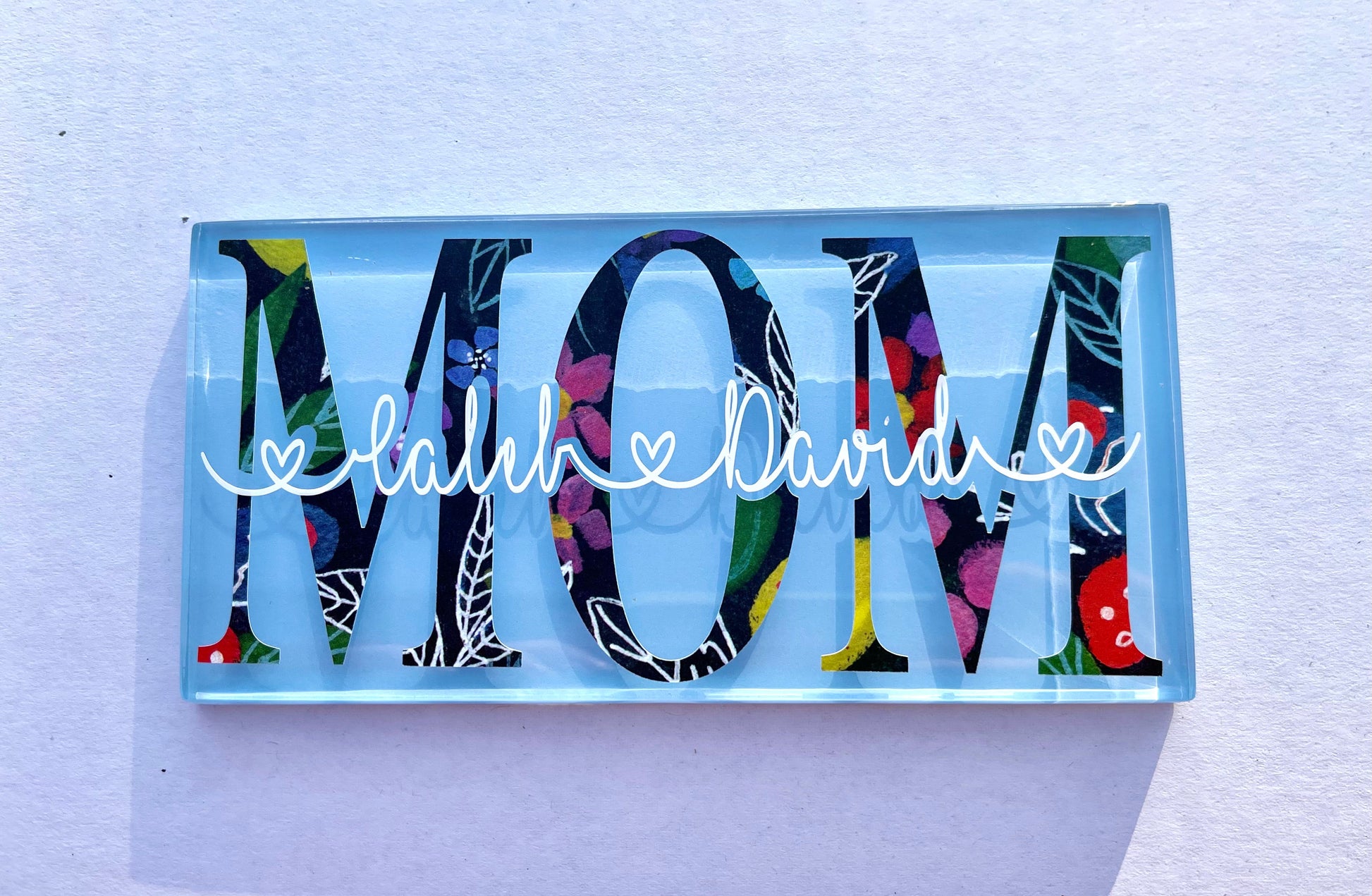 Please order the Mother's Day tile if your background name is Mom, Grandma or similar. Customize this tile to your liking: Dad, Sports, Graduation, Wedding, Baby Stats, etc. ❣️ Some floral patterns come in and out of stock. The color of the tile will be chosen to compliment the vinyl best (light or gray). Blue tiles are temporarily out of stock.