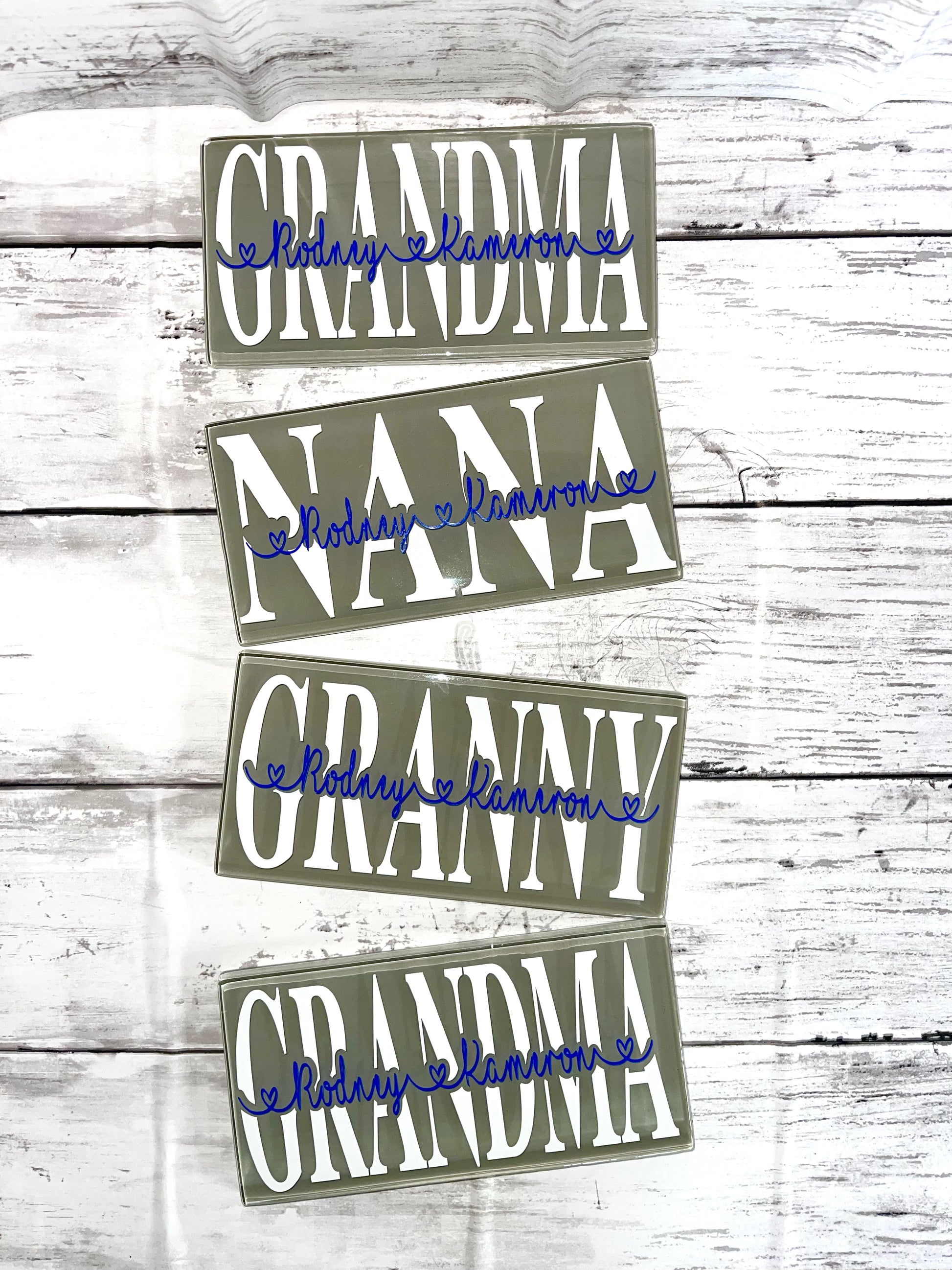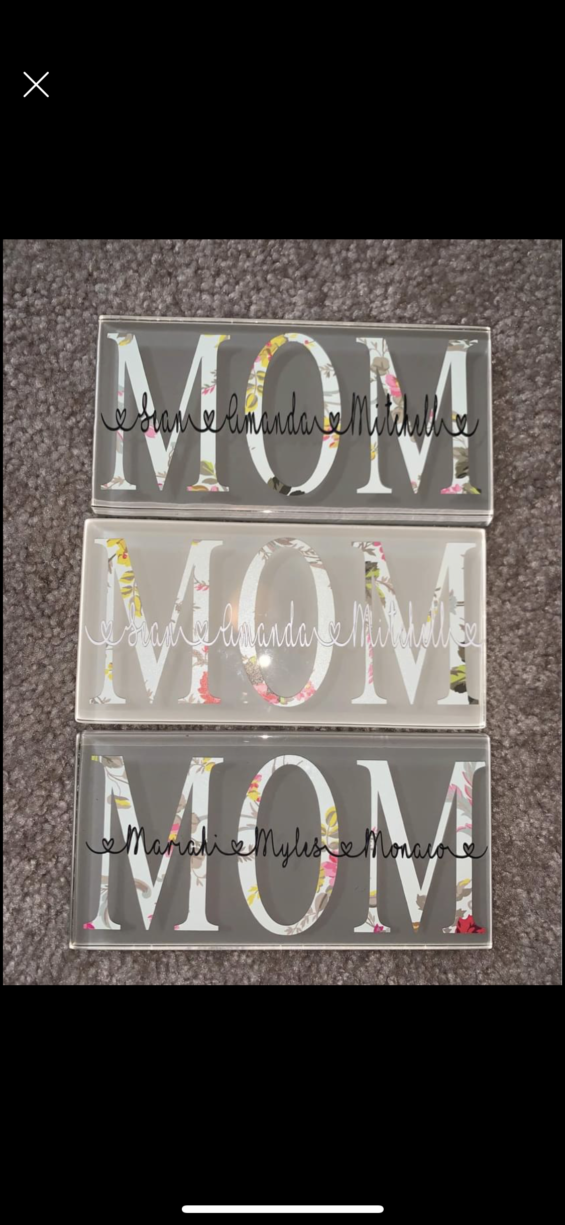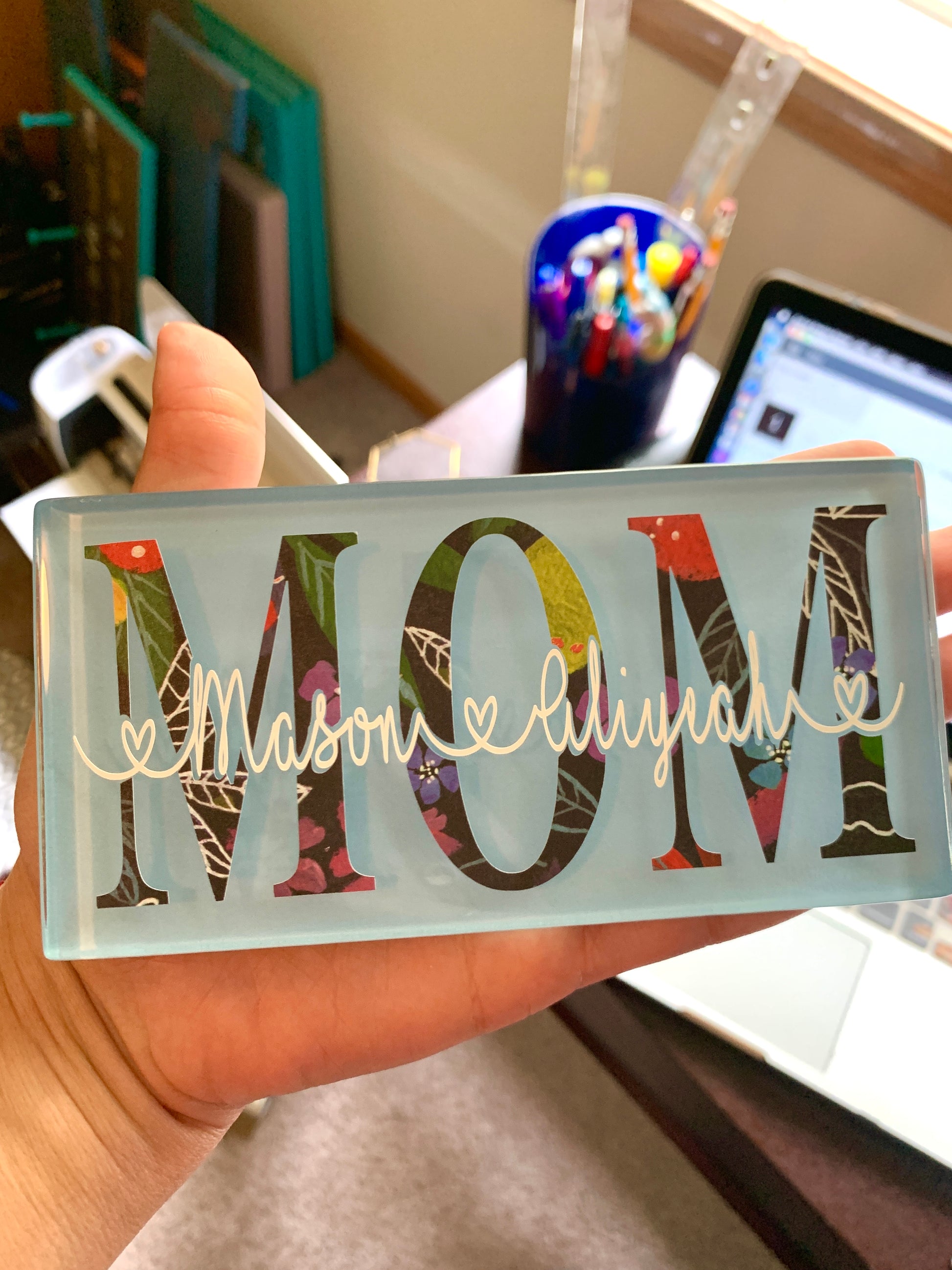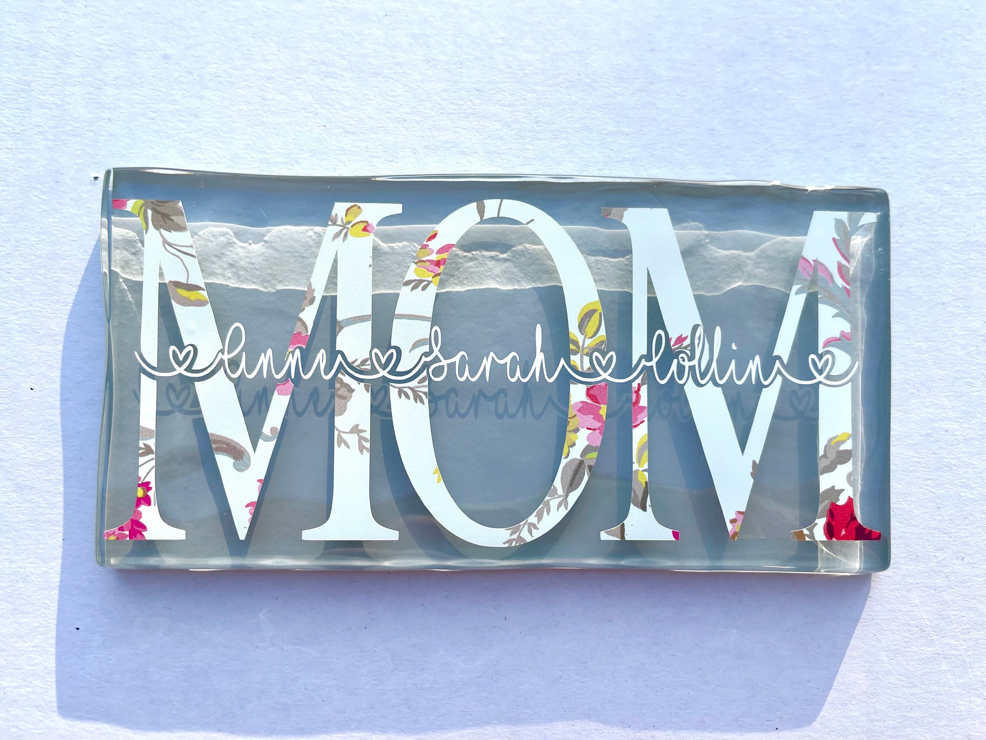 This is where my journey began, with Mother's Day Tiles. Personalized, down to the names and colors. Some floral patterns come in and out of stock. The color of the tile will be chosen to compliment the vinyl best (light or gray). Blue tiles are temporarily out of stock.
