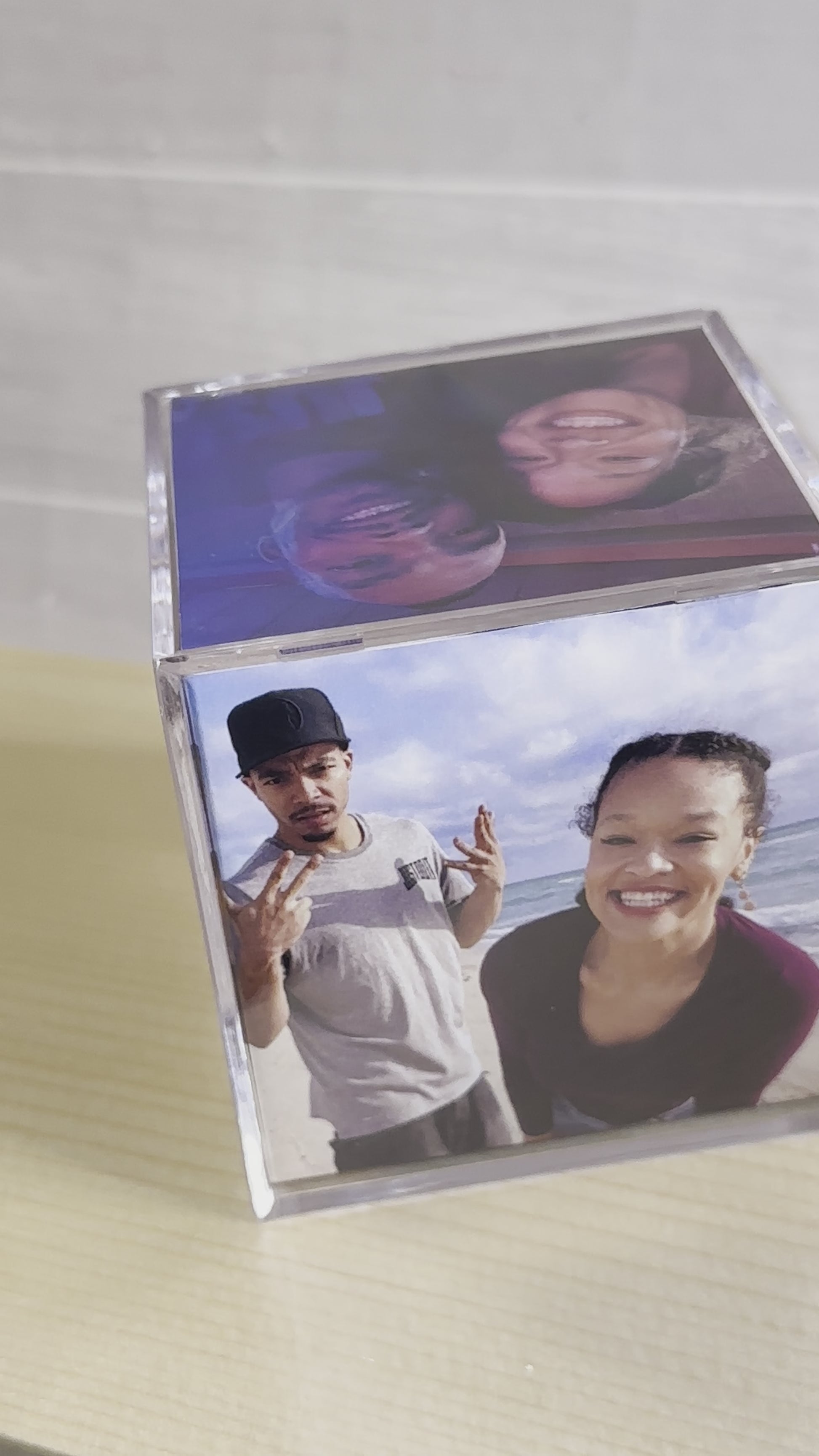 A great way to display 6 important photos of your love! Give the gift of a personalized photo cube this Valentine’s Day. Perfect gifts for him or her. This cube is a great size to place anywhere, measuring 2.75” x 2.75”.